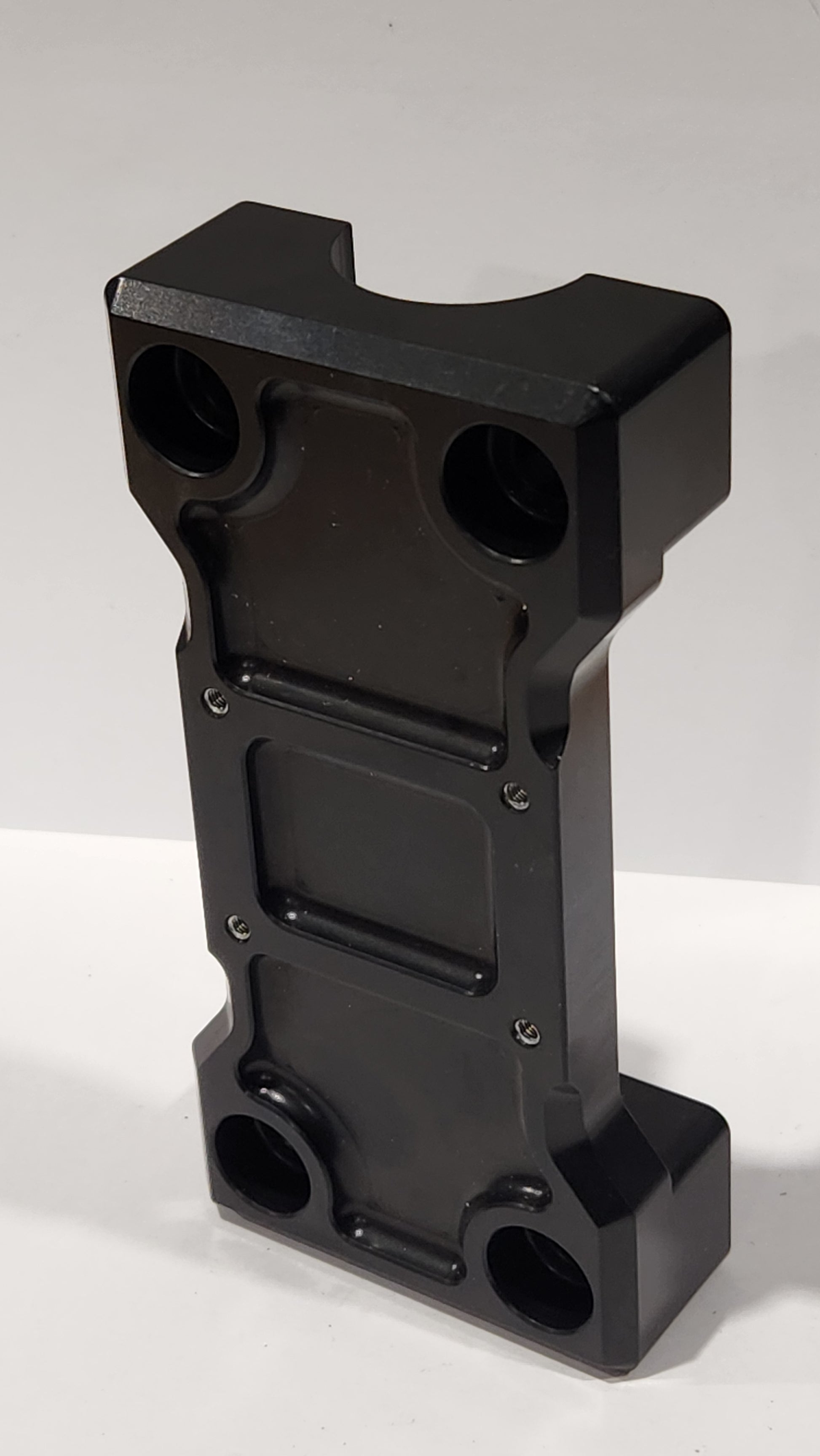 This upper handlebar mount can be used with stock lower mounts and dramatically reduces handlebar mount flex and allows the use of an Amp/Quadlock mounting system with 4 3mm X .5mm threaded mounting holes 38mm X 30mm. The superior fit between the bars and upper clamp will also help prevent the bars form becoming crooked after small crashes. The upper mount is machined from 6061-T6511 aluminum billet and includes the 18-8 stainless steel fasteners needed for installation. We currently have the mounts in black but will be willing to offer the mounts if different colors if there is enough interest. Oh these mounts will fit the lower mounts if you chose to upgrade at a latter time.
