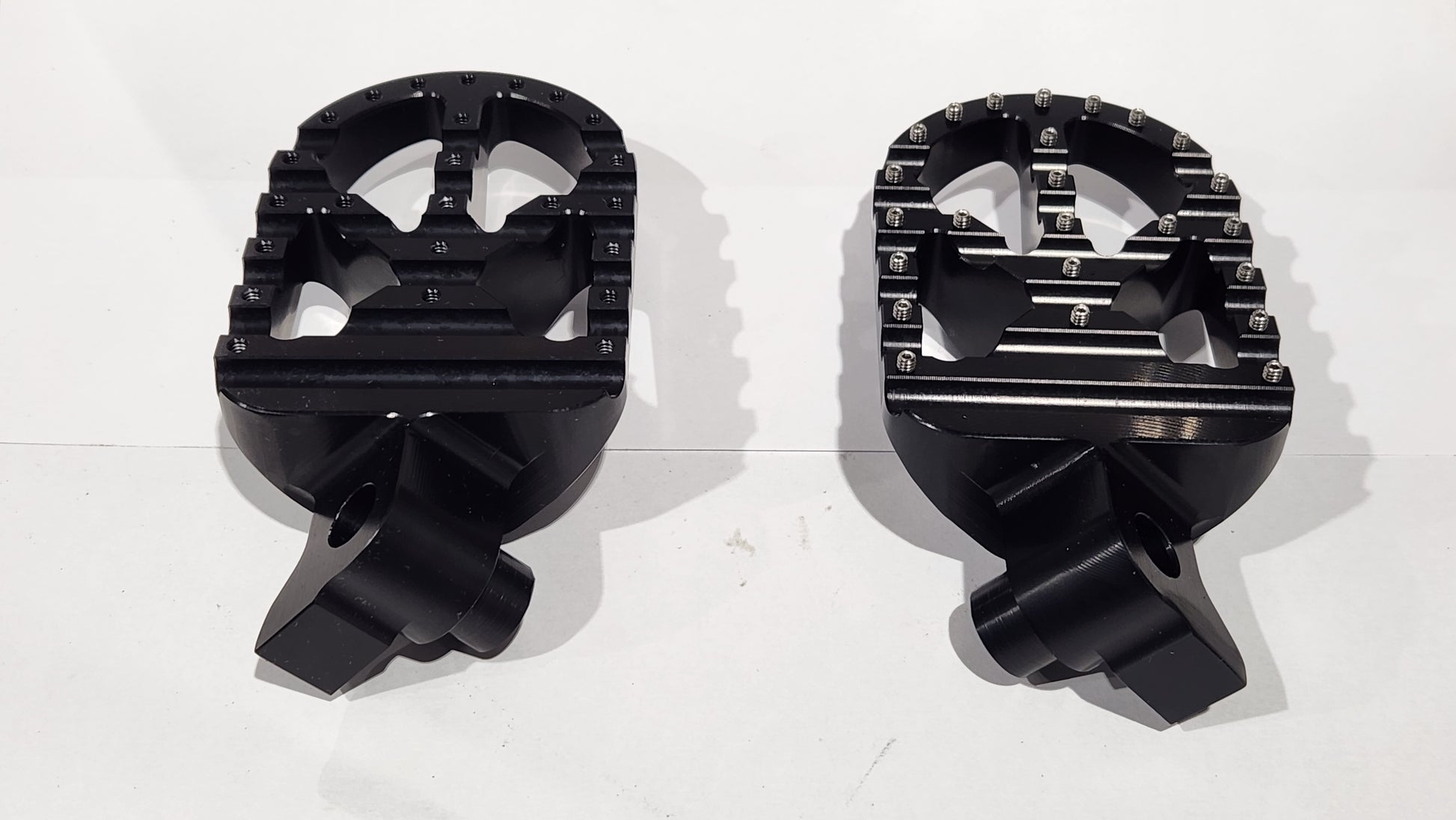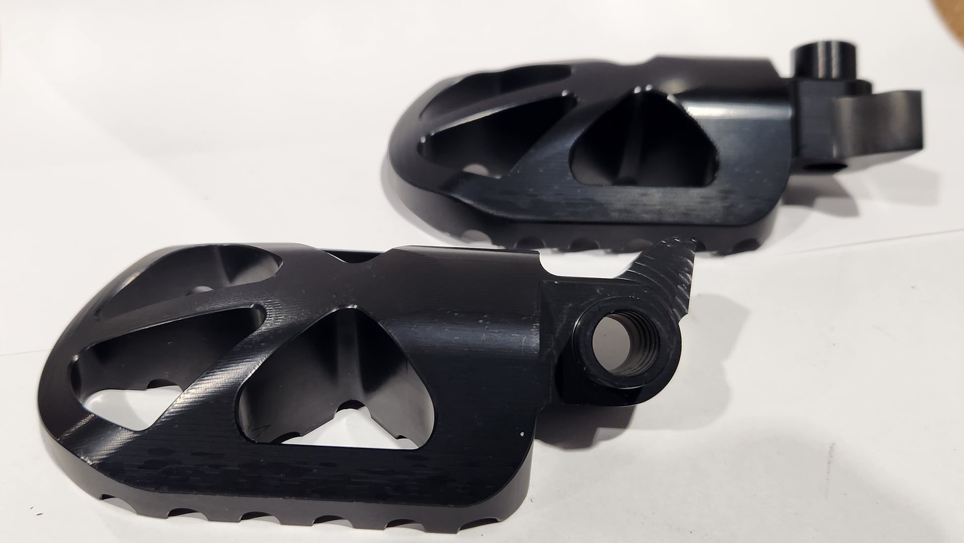 The Yamaha Ténéré 700 is a rugged off-road motorcycle designed to take on any terrain. With its powerful 700cc engine, it’s ready to conquer the wildest of trails. Its reinforced black pegs provide superior grip and comfort even when riding in the toughest of conditions. They are made form billet 6061-T6511 aluminum bar stock. They are significantly wider then stock, with stock length which should keep you from getting hung up in the trails. We have added optional 4-40 18-8 SS set screws for added traction included with purchase. The pegs currently are available in black but will be willing to have them anodized in a different color if there is enough interest.